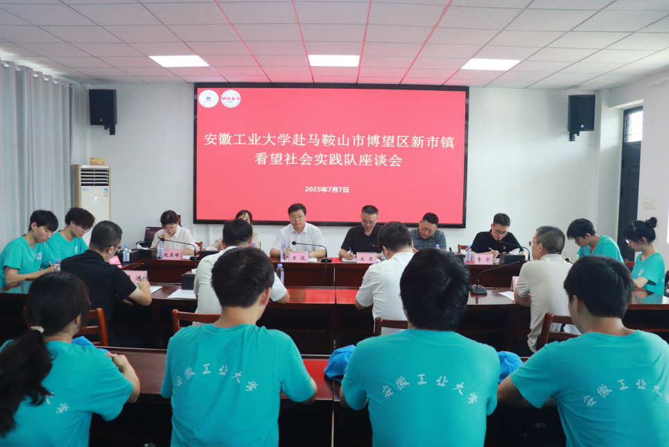 在慰问暑期社会实践队的座谈会上,王俊对博望区新市镇党政领导给予我校师生社会实践提供的支持表示诚挚的感谢,充分肯定了王许、徐纪选等活跃在基层一线的优秀校友为母校搭建的实践桥梁;王俊向同学们提出了三点期望:一是要用实践真正读懂中国乡村,将个人理想融入国家发展伟业;二是要用心提炼调研所得,将专业知识与乡村实践紧密结合,形成高质量的调研报告;三是要持续涵养脚踏实地的精神品格,在乡村全面振兴的火热实践中刻苦学习、增强本领。王许介绍了博望区新市镇特色产业布局,对母校一直以来在校地合作中提供的技术和人才支持表示衷心感谢,后续将为常态化社会实践持续搭建好平台,助力同学们在基层实务中提升解决问题的能力,学会系统思考。会上,徐纪选介绍了新市镇的发展历程、工业布局;实践团队学生代表杜元元汇报了社会实践的相关调研成果和成长感悟。