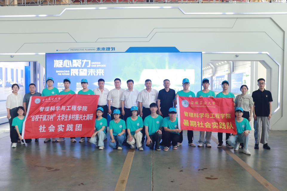 7月7日上午,校党委副书记王俊率队赴博望区新市镇慰问暑期社会实践队,并开展访企拓岗活动。马鞍山市博望区党委副书记、新市镇党委书记王许,新市镇党委副书记、镇长徐纪选、安徽东海裕祥智能装备科技有限公司董事长孙绵玉等热情接待了安工大一行,管理科学与工程学院负责人、师生代表以及区镇相关部门负责人陪同参加。