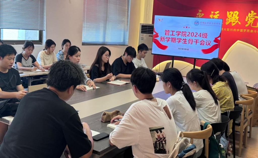 为进一步提升学生干部综合素质,增强服务意识与责任担当,9月5日中午,管理科学与工程学院于汇文楼A502召开2024级“总结过去、规划未来”班级学生骨干培训会,会议由2024级辅导员李军慧、孙如梦主持,2024级全体班级学生骨干参与。