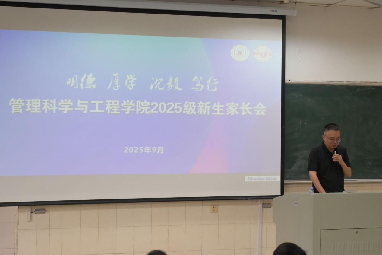 为构筑家校协同育人桥梁,助力新生顺利适应大学生活,9月6日下午,管理科学与工程学院于阶教103召开2025级新生家长会,学院领导班子、系室主任、2025级班主任、辅导员以及全体新生家长参加本次会议。会议由院党委书记王军主持。