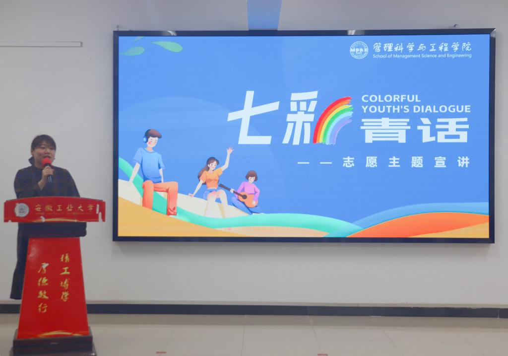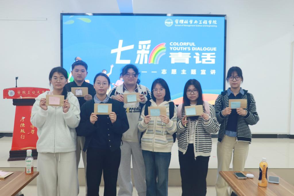 为弘扬雷锋精神,深化青年学子志愿服务意识,3月27日,管理科学与工程学院在新大活102举办第八期“七彩青话”主题活动——“志愿青春·向西而行”。校青年志愿者协会指导教师赵一,院团委书记赵玉婷,25级辅导员李思雨,校第26届研支团团长李嘉懿以及各年级学生代表等70余人参与活动。