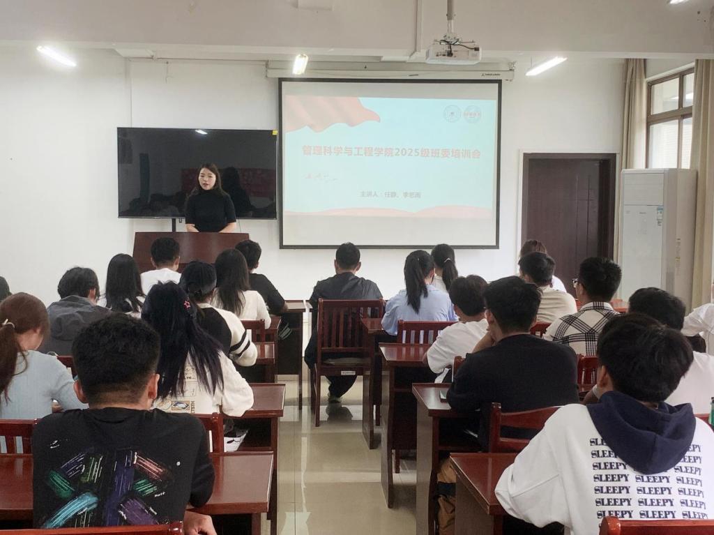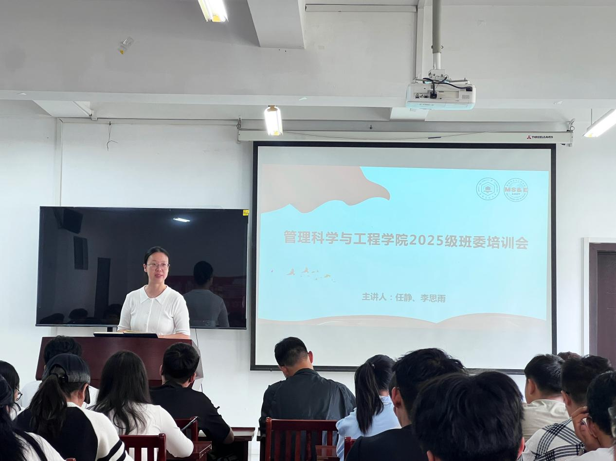 为扎实推进新学期班级建设工作,帮助新生班委尽快进入角色,提升综合能力与服务意识,10月15日中午,管理科学与工程学院在汇文楼A308教室组织召开2025级新生班委培训会。培训由辅导员任静、李思雨主讲,全体新生班长、副班长、团支书及学习委员参加。
