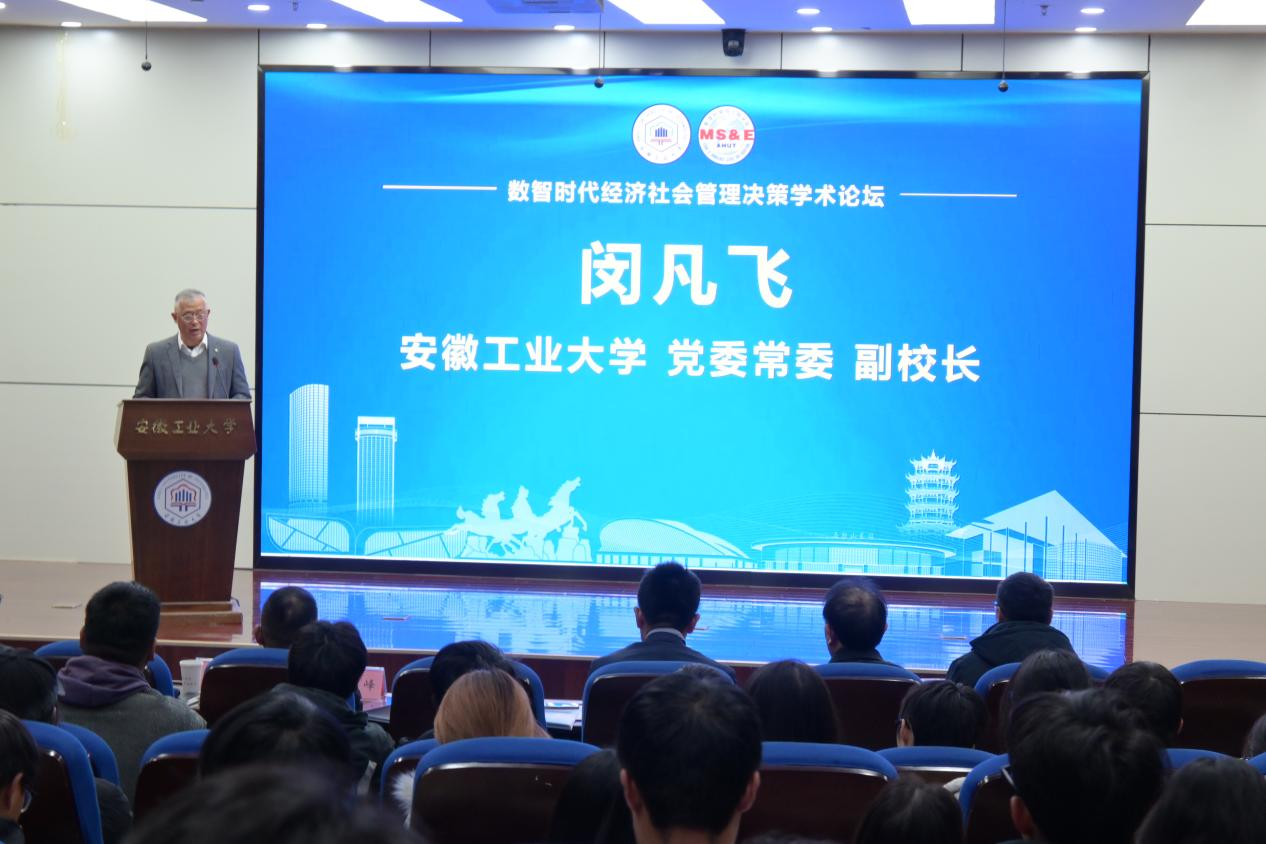 开幕式上,闵凡飞代表学校向各位专家学者表示欢迎,介绍了我校的办学历史以及管理科学与工程学院学科建设成效。他指出,在全国上下深入学习贯彻党的二十届四中全会精神之际,举办“数智时代经济社会管理决策”学术论坛暨学科建设研讨会,意义深远、影响广泛。面对数智时代的发展机遇与使命担当,学校始终紧跟国家战略步伐,将数智赋能贯穿学科建设与人才培养全过程,积极探索“数智+管理”的交叉融合路径,在推动数智技术与经济社会发展深度融合中贡献力量。
