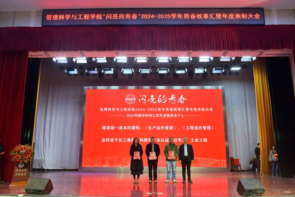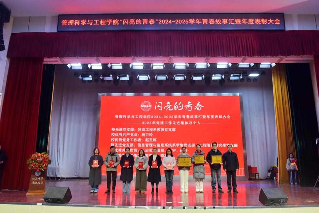 12月30日晚,管理科学与工程学院2024-2025学年青春故事汇暨年度表彰大会在秀山校区大学生活动中心举行。校党委常委、副校长闵凡飞,校党委常委、宣传部、统战部部长王菁,学生工作部、研究生院、党委教师工作部、发展规划处、教务处、科研院相关部门负责同志,学院党政领导班子,各系室主任、支部书记、教师代表、全体辅导员老师、受表彰的先进集体和先进个人及各年级学生代表等共500余人参加大会。
