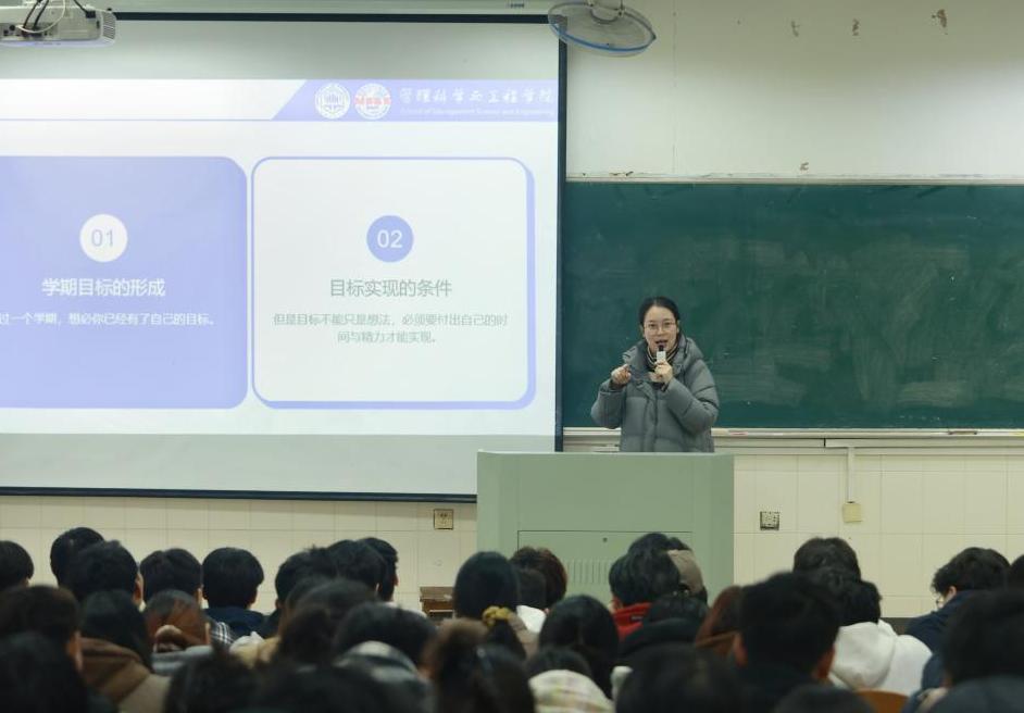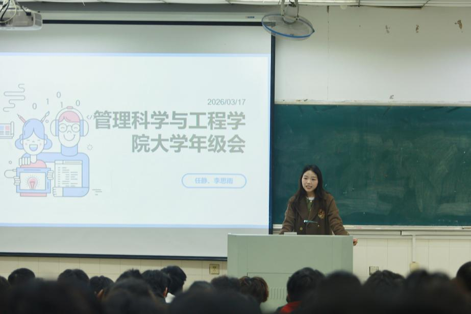 为全面总结上学期学风建设成效,科学规划新学期成长路径,3月17日,管理科学与工程学院在阶教201召开2025级新学期年级大会。会议由辅导员李思雨、任静主持,2025级全体学生参会。